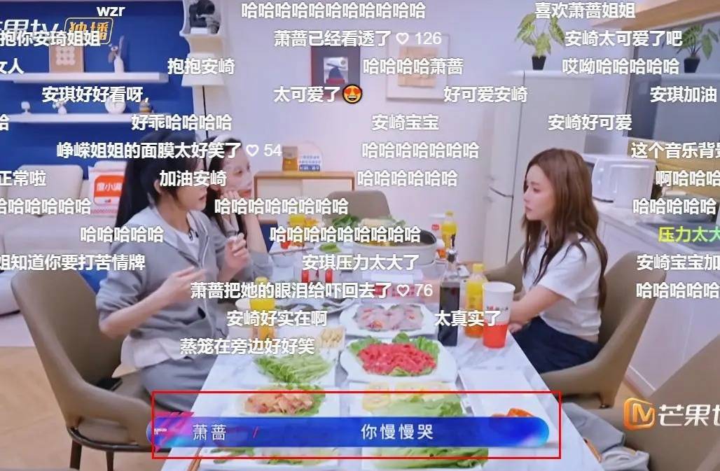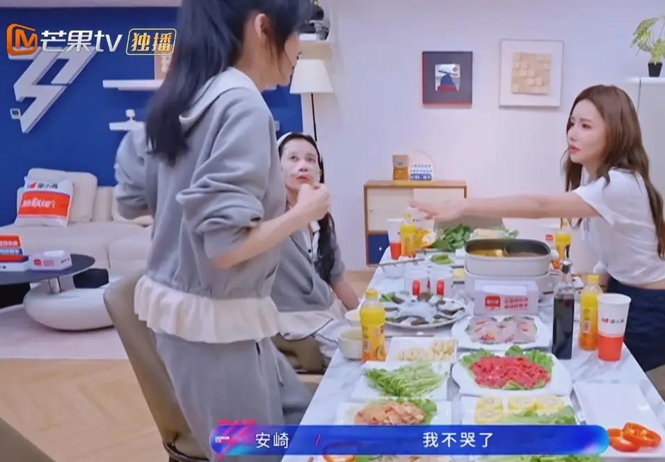 训练中,安崎、萧蔷、温峥嵘一起吃饭,安崎情绪有些失控,眼泪快流下来,身旁姐姐定会立刻安慰,甚至同情,然后一起哭。
